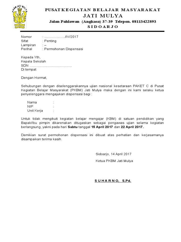Contoh Surat Permohonan Dispensasi : Surat Permohonan Dispensasi Pdf / Yang mengajukan orang tua kandung atau saudara kandung;